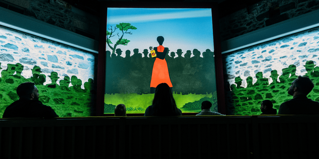 The creative team drew upon the extensive Diageo archives, whisky historians and makers, and members of the community for those stories, artefacts, and local arts and crafts. For instance, the paucity of family photos inspired the use of Georgian-style silhouettes in a film created by Eyebolls, an award-winning boutique animation and live action studio founded by two women in Edinburgh.