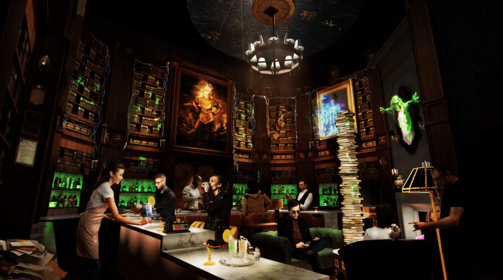 The Wonderverse includes a variety of indoor attractions, including a Screen Gems “Eatertainment” restaurant, an immersive sound and light show featuring Sony Music properties, and the Ghost Bar – a cabinet of curiosities-style bar themed as a reliquary for the original Ghostbusters.